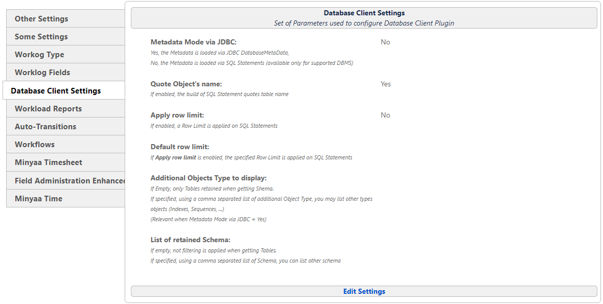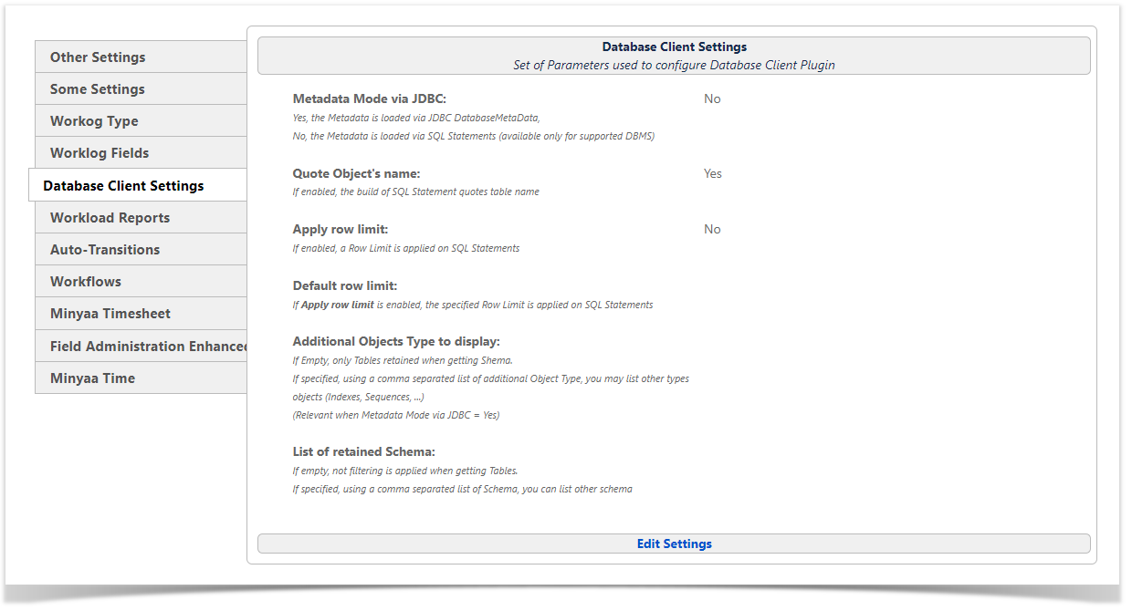 When installed, Alkaes Database Client for Jira installs also the plugin Alkaes JIRA Plugin - Settings Mangement, used to manage all settings of Alkaes plugins.