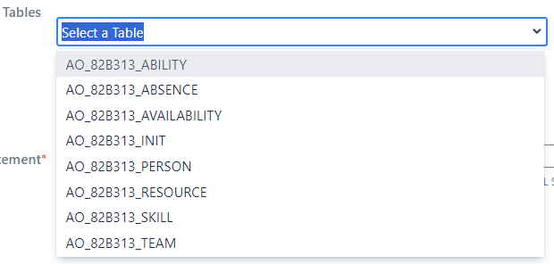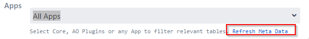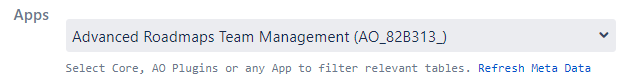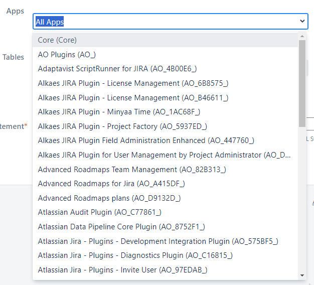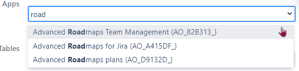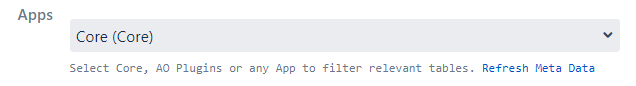 Depending on the retained filtering on Apps Select Box, you will see in Tables Select Box only Tables of selected Apps.