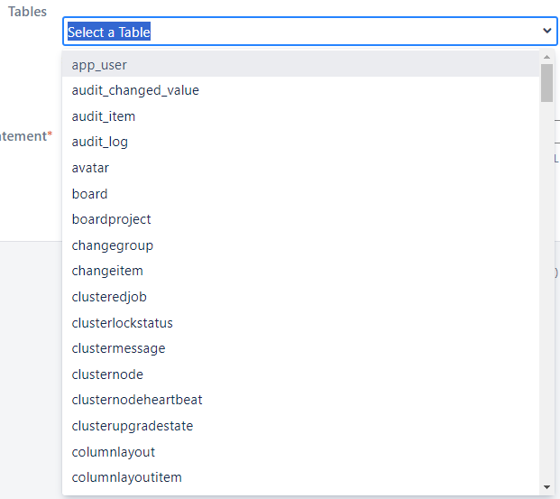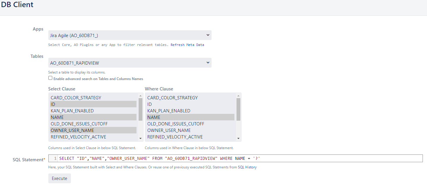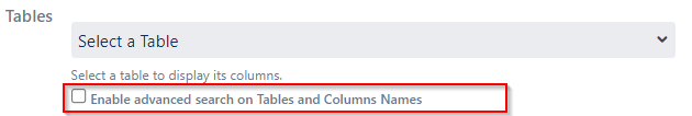 If you have selected a specific Table, an additional section appears : SELECT and WHERE Clauses Select box, where all columns of selected Table are displayed.