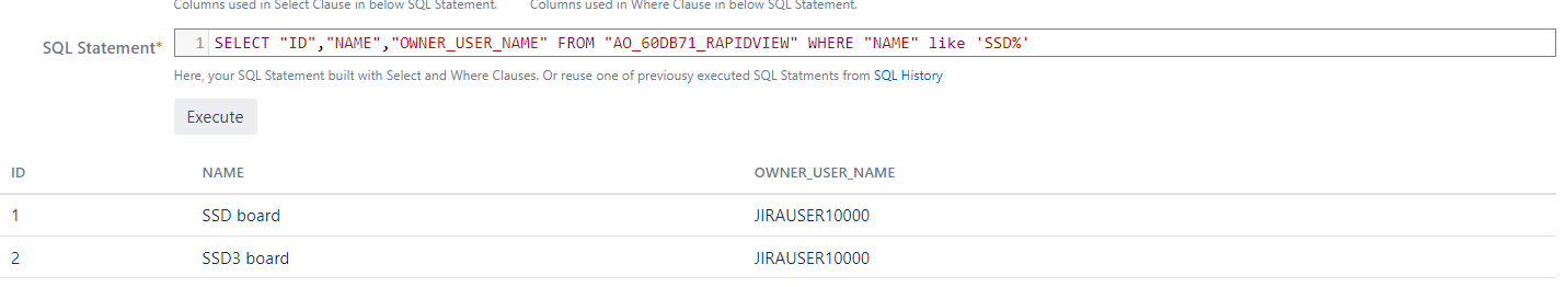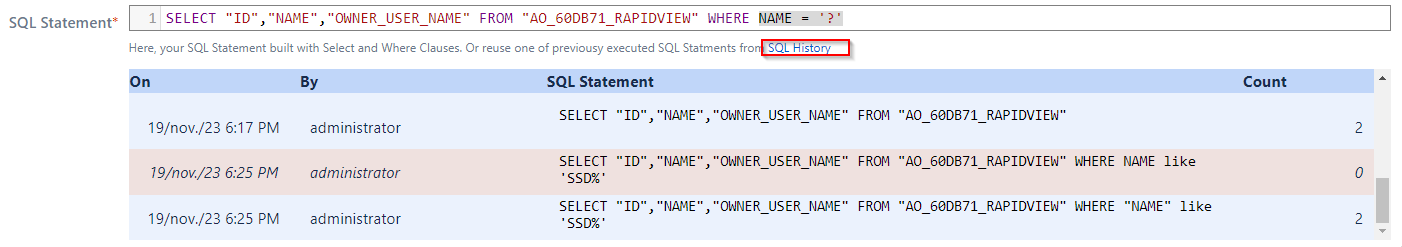 By clicking on the relevant row, you will see your SQL Statement copied to the SQL Statement field, ready for a new execution.