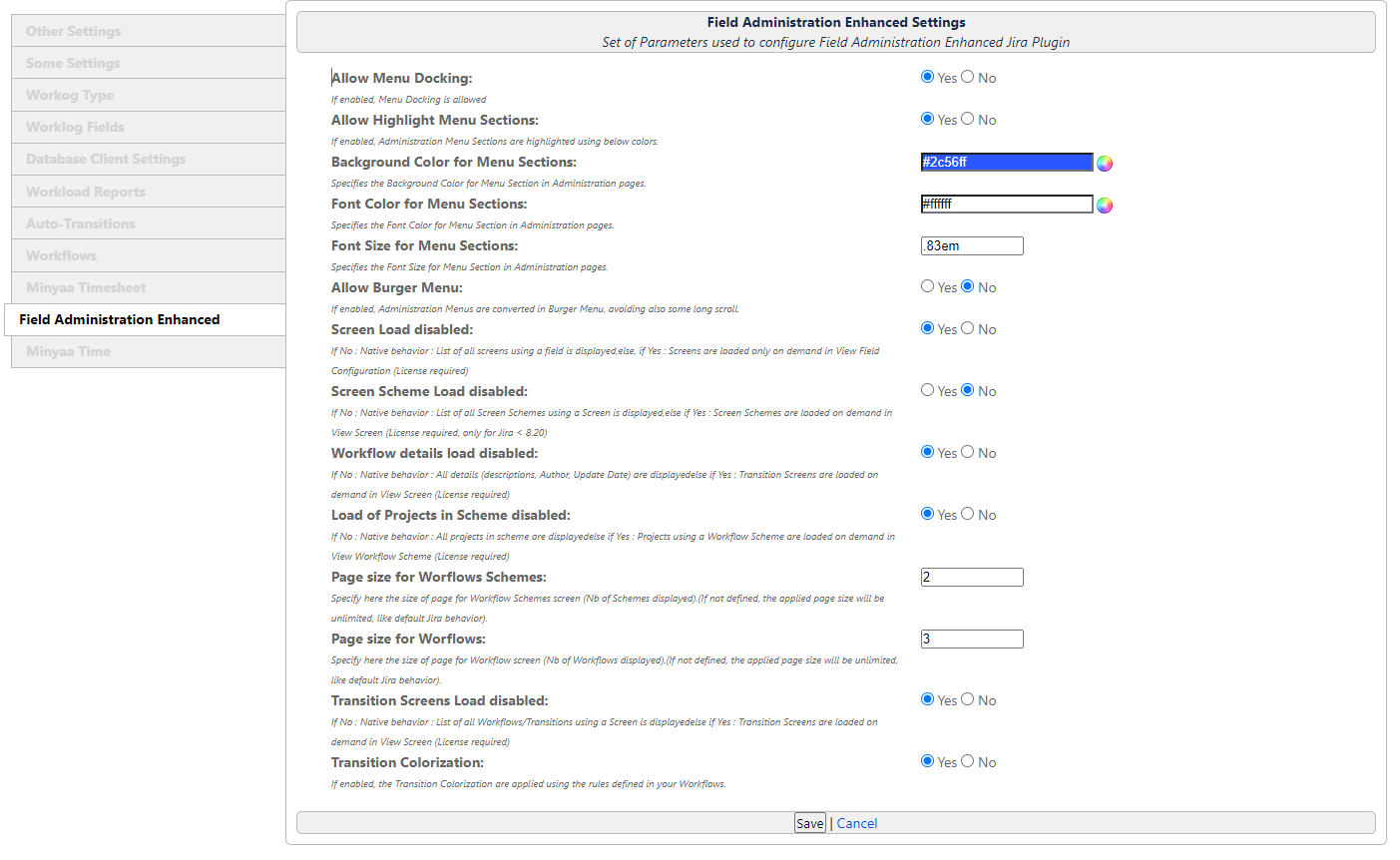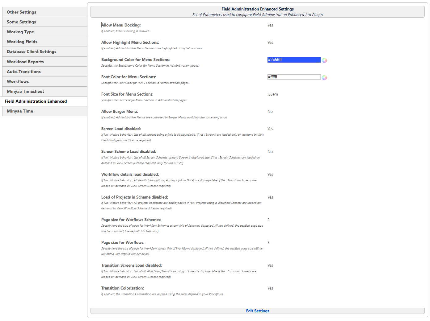 Different settings are introduced by Alkaes JIRA Plugin Field Administration Enhanced allowing to enable/disable/configure its features.