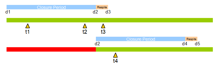 • At time t4, the Closure Period from d1 to d2 is closed.