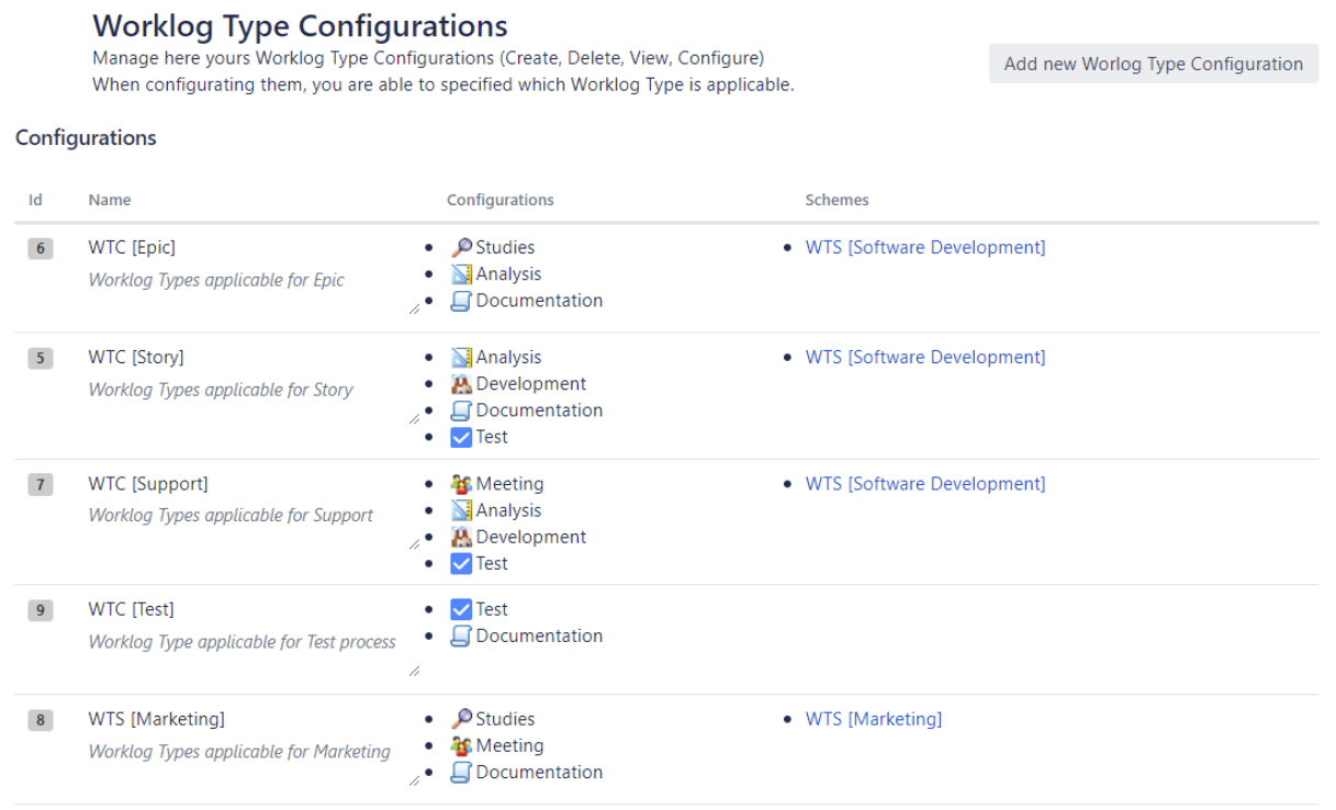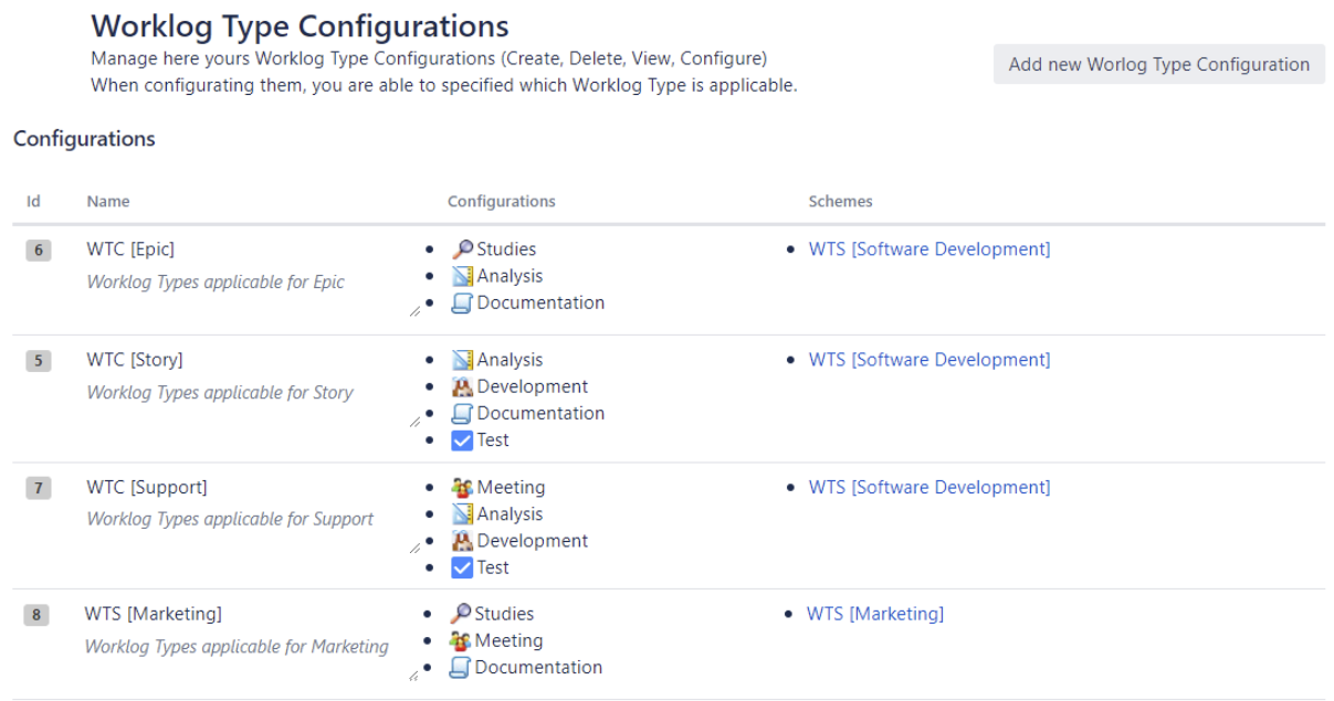 List of Worklog Type Configurations