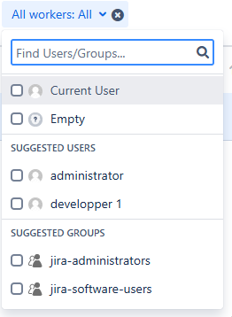 This Custom Field Type provides the list of all Workers, users which are working or have worked on an issue.