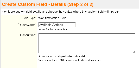 AvailableWorkflowActionField provides a browser column with all of the currently available Workflow actions.