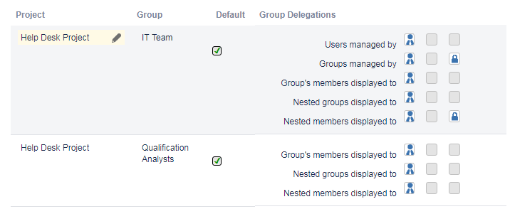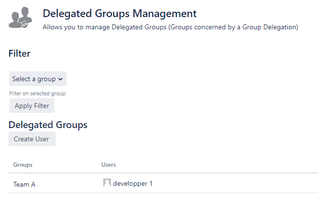 Group of each Group Delegations qualified as Default will be displayed as a group selected for being granted to the new created user.