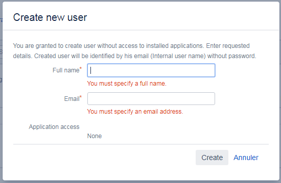 The Application access will be no requested, since this new user will be no allowed to access JIRA.