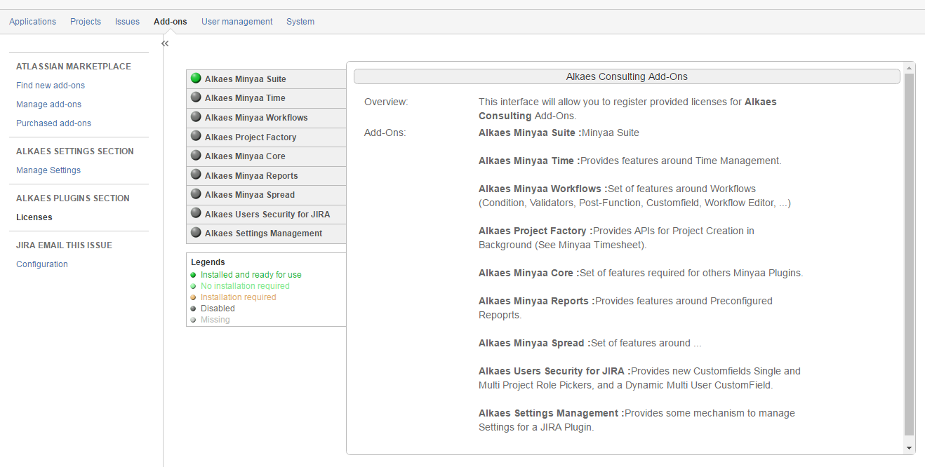 - And the list of embedded plugins : Alkaes Plugins that are deployed with the Editions.
