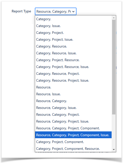 Note that, when selecting a new combination of Aggregation criteria, the resulting combination will be added a new predefined Report Types for others reports. - The Administrator can also define/restrict default combination of aggregation (See Workload Reports in Minyaa Time Settings ).